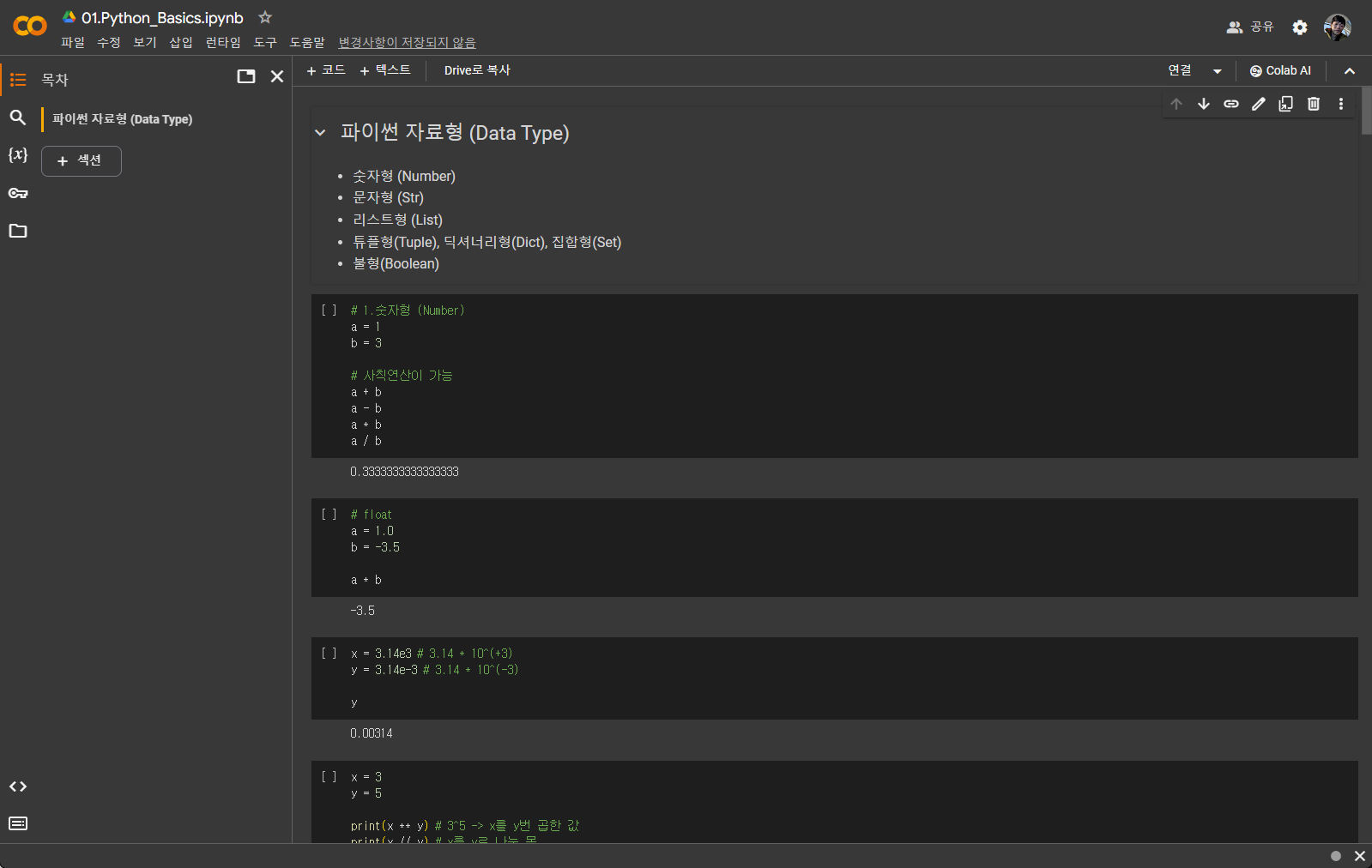 나의 노션 워크스페이스로 복사해서 수정, 추가가 가능하니 매우 좋다.더불어, 기초 실습의 경우 구글 코랩을 활용하였다.