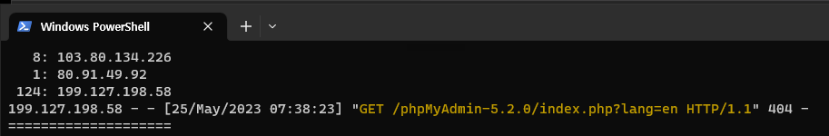 비슷한 시간에, 동일한 공격자(IP)가 지속적으로 접속하려는 시도를 했습니다.1초 단위로 접속 시도하는 것을 보아, 취약점을 찾는 해킹 프로그램을 사용해서, 접속 시도함을 알 수 있습니다.